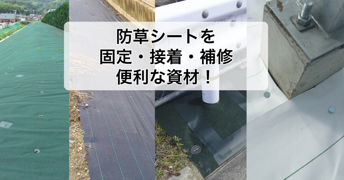 防草シートを敷設するときに必要なのが、シートを固定する抑えピンなどの副資材です。しっかりと防草シートを固定して、隙間から草が生えないようにするための便利な資材をご紹介します。01 抑えピンシートを固定するピンです。使用箇所や土壌の条件によって選んでいただけます。■U型目串最も使用されている便利なピンです。15cm・20cm・25cmから選べます。露地なら20cmか25cmで、農業用ハウス内なら15cmがよく選ばれます。■サブアンカー土壌内に砕石等障害物がある現場には9φ×200mmのサブアンカーがおススメです。■異形鉄筋アンカーー直径10mmの太さと表面の凹凸で、しっかりと固定できます。■M型目串造園施設でのご使用に向いています。15cmの幅で大きく固定できます。砂利下固定用途や人工芝の固定に。■デカピン大頭釘とも呼ばれる釘タイプのピンです。直径5mmの平らな頭なので、打設しやすいです。農業用ハウス内で使用されることが多いです。■硬質プラスチックピン軽量で扱いやすいピンです。返しが付いているので抜けにくくなっています。農地でも非農地でも使用できます。02 ワッシャー(抑え板)価格と性能と色の異なる3種類から選んでいただけます。■PEワッシャー一番安価なワッシャーです。Uピンでも釘タイプのピンでも使用できます。露地でも農業用途でも使用できます。■ドーム型ワッシャー穴をピンで開けるタイプのワッシャーです。隙間も少なく草が生えにくいです。防草シートを抜けてきた雑草も裏面の仕切りがくい止めてくれます。■黒丸君 白板ルンルンシート白ピカのような白いシート向けの白いワッシャーです。黒いワッシャーだと目立ちますが、シートと同じ色で止めることができます。03 補修テープシート同士を張り付けるテープです。誤ってカットした時の補修にも使用できます。ピンを刺した部分の隙間埋めにも。■ボンドテープVF450アグトラシート・アグトラフェルトシート用のテープです。剥離紙付の強力な粘着テープです。シート同士のつなぎ目や、シートの端部と構造物の隙間を埋める時に便利です。■ボンドテープVF450(100mmハーフカット)10cmにカットされているテープです。シートを抑えたピンの上に貼ってピンの隙間を埋めることができます。■ルンルンシート補修テープ(黒)農業用の黒色防草シートの補修に使えます。剝離紙がなく、手でカットでき、施工性が高いです。■ルンルンシート補修テープ(白黒)農業用のグレー(白黒)色の防草シートの補修に使えます。剥離紙付タイプです。粘着力が高く、シートのつなぎ目やカット部の補修に使用できます。■白ピカテープ農業用の白色防草シートの補修に使えます。剥離紙付タイプです。粘着力が高く、シートのつなぎ目やカット部の補修に使用できます。また、遮熱性も高いので、熱を持つ鉄等に貼って、遮熱用途としても使用できます。